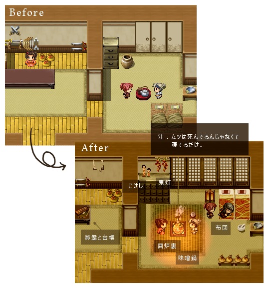 まずは小郡村‐三沢家(武器屋)からマップ改変。